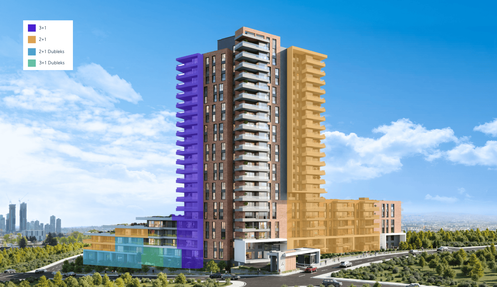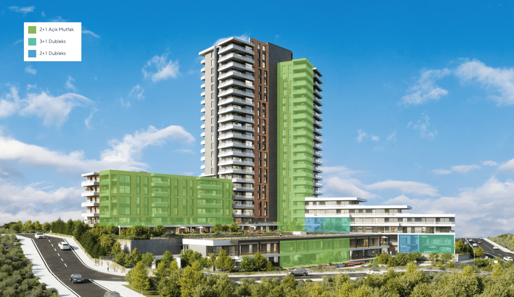 Proje, 2+1, 2+1 dubleks, 3+1 ve 3+1 dubleks olmak üzere, her zevke ve ihtiyaca hitap edecek şekilde tasarlandı.